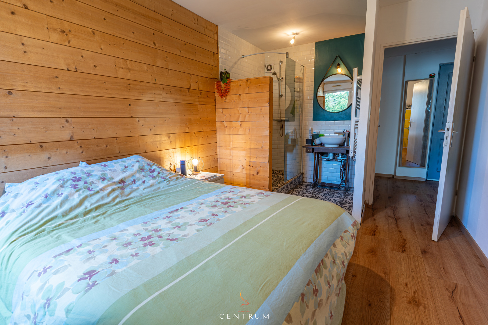 La chambre, généreuse, dispose de sa propre salle d'eau. Les WC sont séparés, pour plus de confort au quotidien.