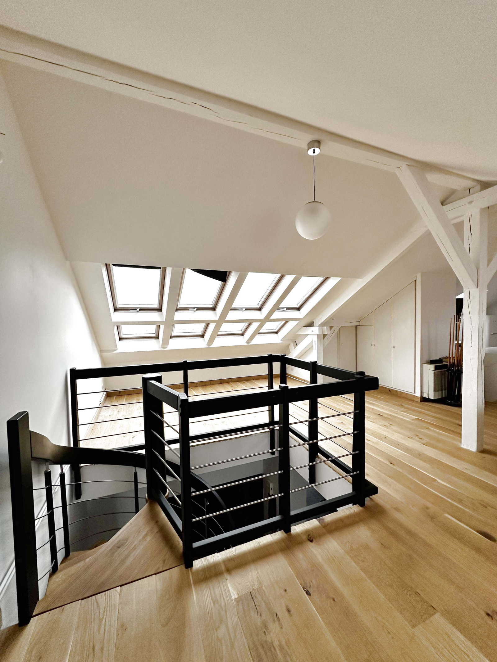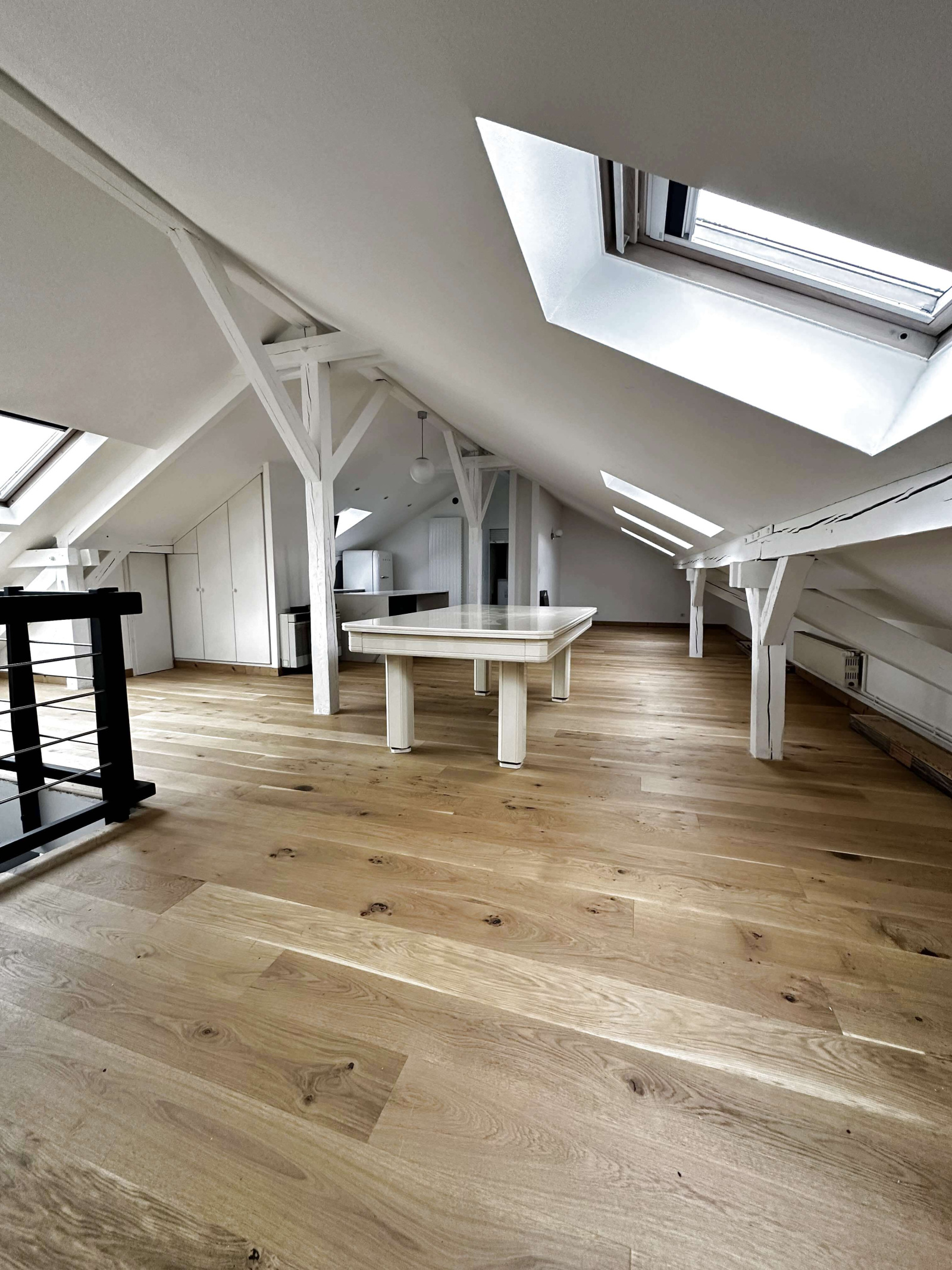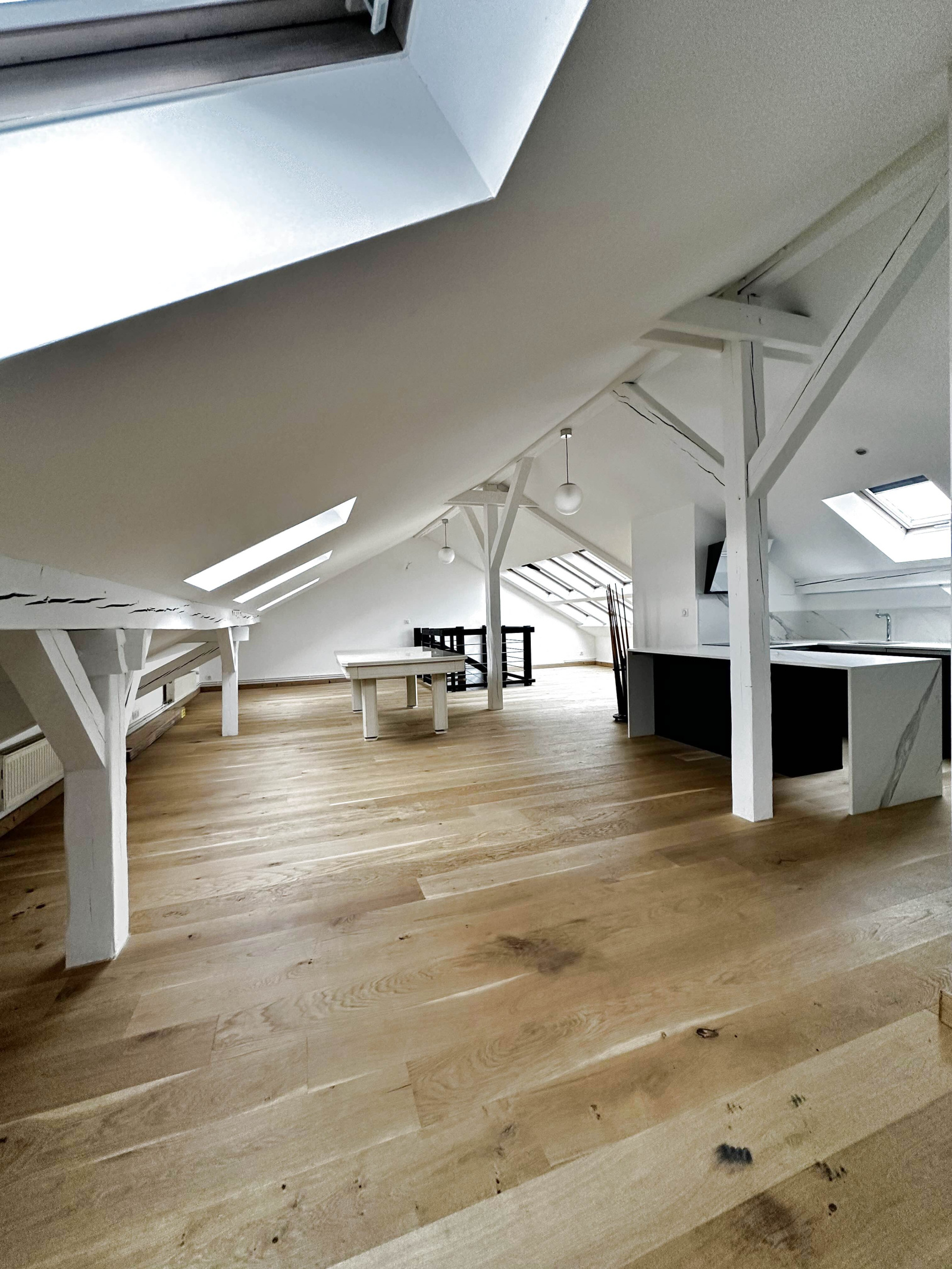 A l'étage par un escalier design, une vaste pièce complète cet appartement pouvant proposer un espace de loisirs pour toute la famille ou une dépendance pour acceuillir amis et famille avec cuisine équipée, une salle de douche, toilettes et placards.