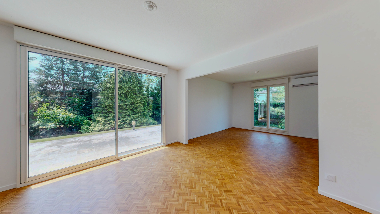 Salon-séjour traversant en L de 60 m² avec grande baie vitrée sud
